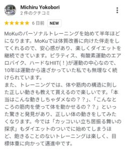 MOKUさんに通うようになってから、日常生活での体のクセや、左右の違いを少しですが気付けるようになりました。